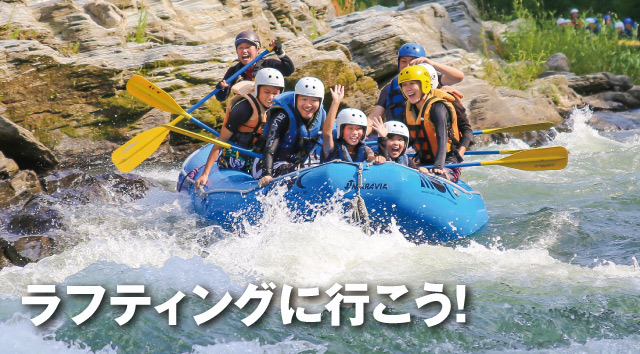 誰もが大自然のパワーを満喫できるウォータースポーツ、ラフティング。白く泡立つ急流にエキサイトしたり穏やかな流れにリラックスしたり、日常を離れて思いっきり自然を楽しみましょう!