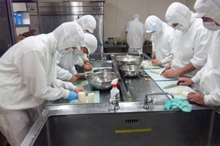 デリカテッセンイーハトーヴ「RIKUGOの森」は、障がいのある方々の雇用や働くための訓練を行う場所です。食品加工、弁当・惣菜の製造、喫茶「Sora」の3つの仕事があります。 当事業所では障がいのある方がこれらの仕事を実践することで、責任感や使命感を感じ、一人の社会人として成長することをお手伝いしています。同時に、一般の企業への就職のための訓練や、その人らしく働ける仕事の創造、経済的な自立のための職場の整備など、「働く」ことに関する様々なニーズにお答えしています。