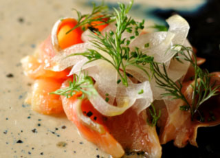 例えば、庄内地方で「ヨオ」と呼ばれる鮭(シロサケ)。遊佐町の月光川水系には毎年10月から12月下順にかけて数万本の鮭が産卵のために遡上します。昔から冬の保存食として珍重されてきた鮭を、庄内の素材にこだわるイタリアンレストラン「アル・ケッチァーノ」の奥田政行シェフ監修のもと、スモークサーモンとして商品化されました。