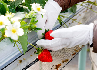 こだわりの詰まった自慢のいちごは、ホテルのスイートルームのウェルカムフルーツや、京都の老舗料亭の水菓子として選ばれ続けています。