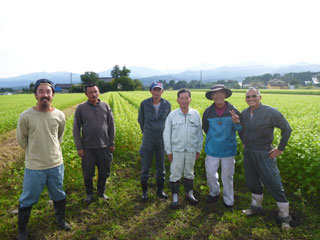 約80haの田畑で、米・大麦・小麦・大豆・ソバ・ネギ・ニンニク・里芋・ジャガイモ・トウガラシなどを栽培し、育てた米・大豆を使って、そば・うどん・そうめん・みその加工販売も行っています。無添加・手作りにこだわり、安心して食べられる食品づくりを目指し、県内初のJGAP認定を取得しました。除草剤を使わない人力と機械による草刈りや、チドメグサ・ヘビイチゴ・ゲンノショウコなどの在来種による地覆を行い、環境に配慮した抑草を行っています。食の安全と環境保全に配慮した組合であることをモットーに日々生産に取り組んでおられます。