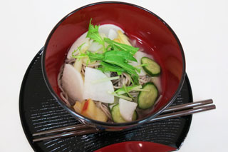 そば…ソバの品種は「信濃1号」です。ソバ茶に最適とされる韃靼ソバも栽培しています。つなぎ用の小麦も自前で生産し、いこいの杜の「三六そば」の原材料は、立山産100%です。