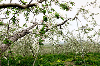 山下フルーツ農園は、平成の合併前は三水村と呼ばれた長野県水内郡飯綱町さみずにあります。さみずは標高500~550mという高地に合って昼夜の温度差が大きく、年間約800~1,000mmという降水量の少ない土地です。また、春から秋にかけて長い日照時間と高い積算温度を誇ります。こうしたさみずの果物栽培に理想的な環境が、濃く色づき、甘みがしっかりのったおいしい果物を生みだします。