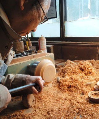 木地挽きの技で作り出す木工品を、木のぬくもりと共にお届けします。