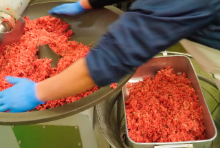 捕れたシカは、町内の工場へ。精肉から製造まで一貫生産体制のため、シカ肉の鮮度を落とすことなくドッグフードの製造に移ることができます。このように、精肉から製造までを一貫して行うことができるのは当社だけです。