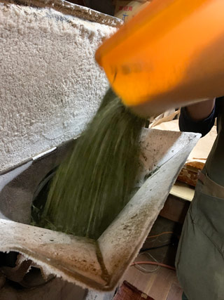 山城屋のお茶は、どこか懐かしさを感じられる味わいにこだわっています。現代の機械技術であればキレイに茶葉・茎などをより分けることも可能ですが、あえて昔ながらの味にこだわり、手仕事で加工を行っています。見た目の美しさには欠けますが、自信を持ってお出しできる茶葉のみを毎年見極め、店内にてブレンドや焙煎加工を行っています。