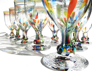 宙(ちゅう)吹きガラスという技法は、目に見えない微妙な温度差を体で感じる「繊細さ」、完成するまで休むことができない体力的な「持久力」、柔らかいガラスの動きに合わせる「反射神経」、重力や遠心力、色や形の違いから生じる膨張率や歪みの違いを理論的に考えながら進めて行く「集中力」が必要とされます。ガラスを扱うことは、「心」で考え「体」で感じる事の大切さを教えてくれます。そうしてでき上がった作品達は、様々な人達と出会うきっかけをもたらしてくれます。新しい出会いは、自分にとって作品を創る大きな目的であり楽しみです。「気」の合った仲間達と話をすることが自分自身を活性化させ楽しんで生きる原動力となり、それをまた作品へと転換させられるよう心がけています。