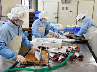 1尾1尾の魚をすべて手作業で捌き、大きな骨から小さな骨まで除去することで、小さなお子さまからお年寄りまで幅広い年齢層の方に喜んで食べていただける加工品の製造を心がけています。隣接する漁港から水揚げされたばかりの鮮魚を加工し、瞬間凍結機を利用するなど、鮮度も抜群です。