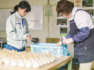 「安心・安全・おいしい」を第一に考え、ひとつひとつ手作業で良品を選別し、出荷を行っています。大自然の中で育った、白くてきれいな養父市のにんにくでお客さまに喜んでいただけることを願って、ファーム一丸となって熱い想いで栽培に取り組んでいます。