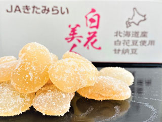 JAきたみらい産のタマネギと北海道産の牛すじ肉をじっくりとろとろになるまで煮込んだレトルト食品「玉ねぎと牛すじのカレー」や、食物繊維が多く含まれる北海道産「白花豆」を原材料とした甘納豆など自慢の商品を取りそろえています。