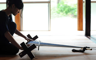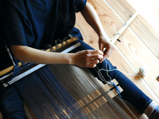 風良では、100年以上前から小谷村で受け継がれてきた高機(たかばた)を使い、今では用いられることの少なくなった糸綜絖(いとそうこう)を使用して織っています。