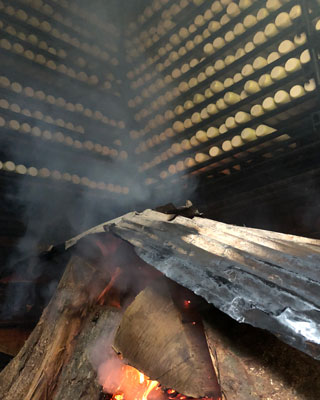 秋田県では天日乾燥法による干し大根の製造には適していないことから、昔から燻製乾燥という独特の乾燥法でいぶりがっこを製造しています。古くは室町時代から続くといわれるこだわりの製法で、桜・林檎の木を燃やして3昼夜燻製乾燥し、こだわりの製法で漬け込んでいます。秋田の厳しい環境が、いぶりがっこをおいしく熟成させます。