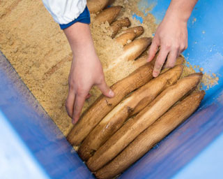 また、昔ながらの味を大切にするため、漬け込みの材料には米糠に塩、砂糖のみを使い、添加物の使用を避けています。従来にないマイルドな味わいに仕上げています。