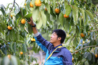 栽培する作物を決めかねていた時、後輩のお宅で食卓に並んだ西条柿を一口食べ、そのおいしさに強い衝撃を受けたことがきっかけとなりました。その後、柿農家の下で2年間学び、2014年に独立就農しました。