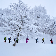 広大なブナの雪原を歩く 鍋倉山スノーシューハイク