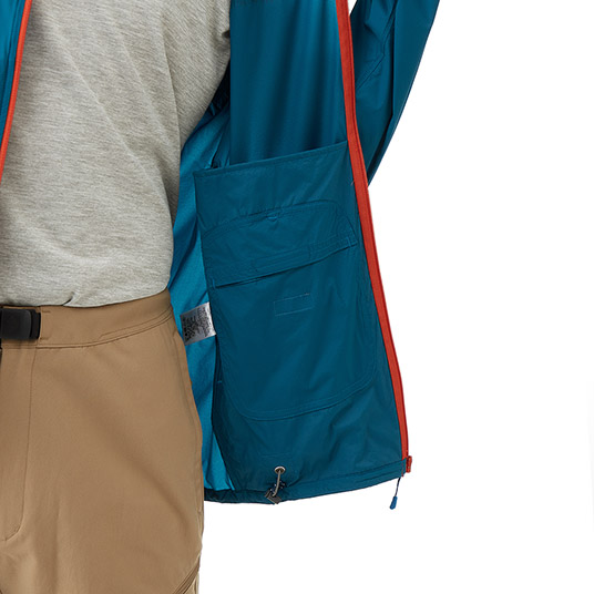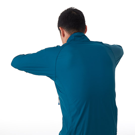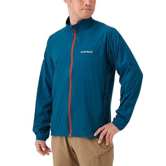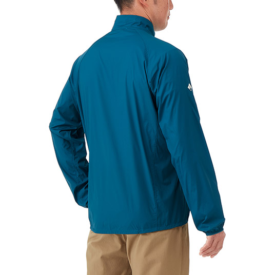 ストレッチ性を備えた超軽量シェル素材を使用し、動きやすさと軽量性を両立したウインドシェルジャケットです。生地表面には、はっ水加工を施しています。裾はリードインコード・システムで調節可能。携行に便利なポケッタブル仕様を採用し、幅広い場面で活躍します。
