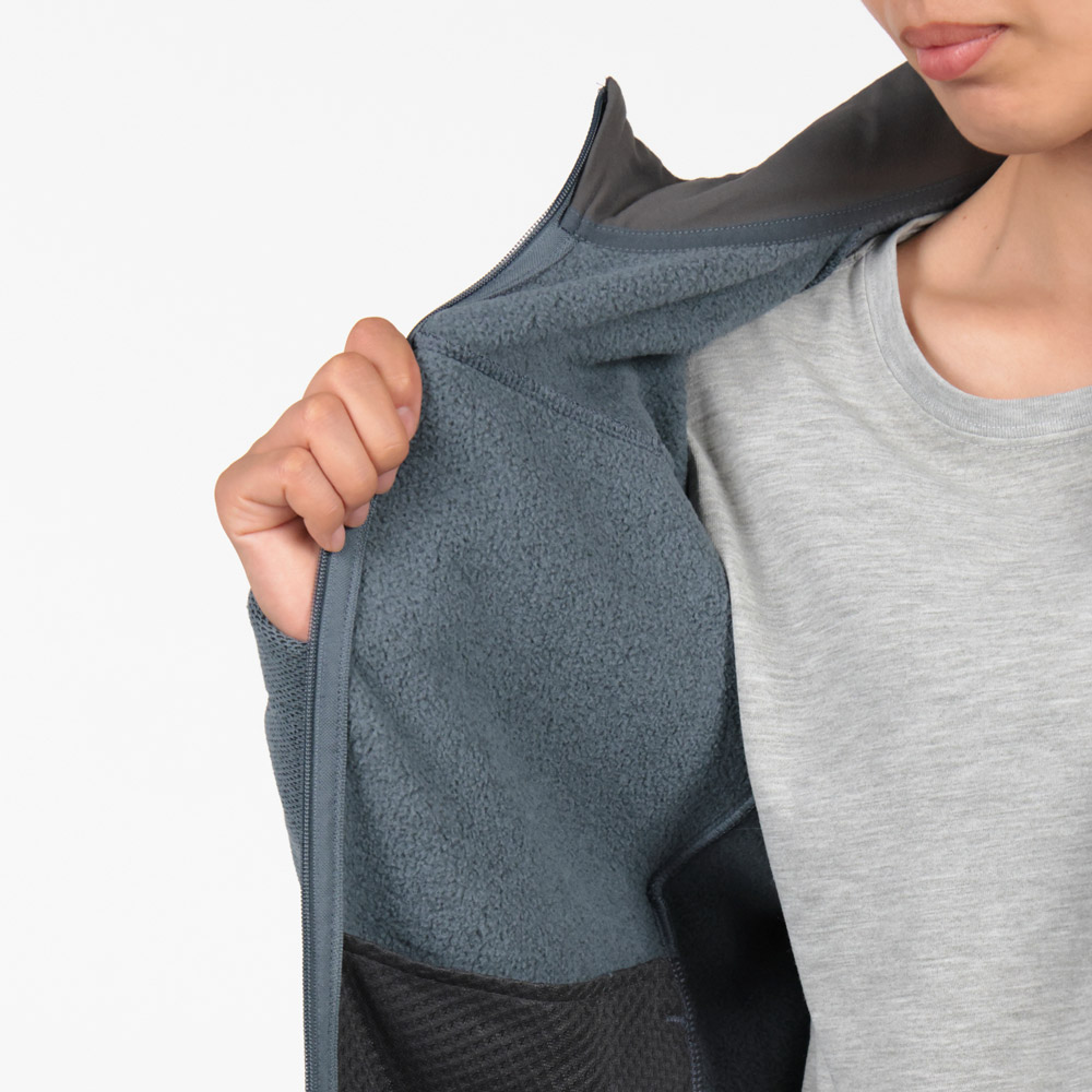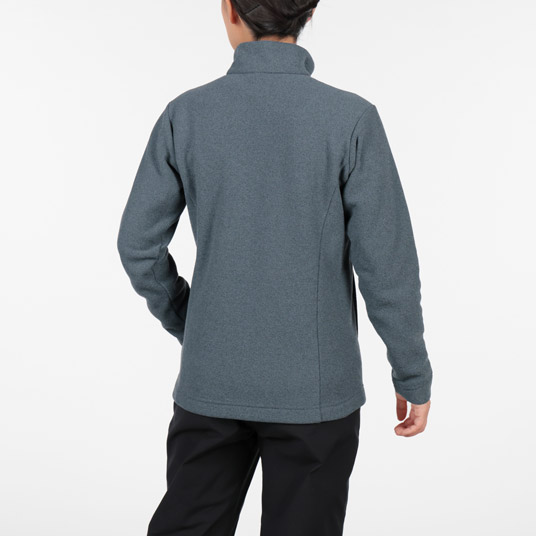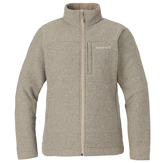 ツイード調の上質な風合いを持つフリース素材を使用したジャケットです。軽量ながらも暖かく、裏面は柔らかな起毛地です。アウターとして厚手のインナーの上にも羽織れるよう、少しゆったりとしたシルエットです。アウターと中間着、どちらでも使用でき、トレッキングから旅行、タウンユースまで幅広く使えます。