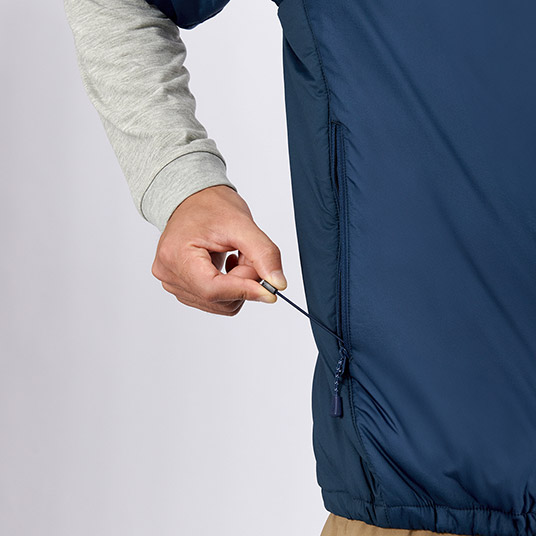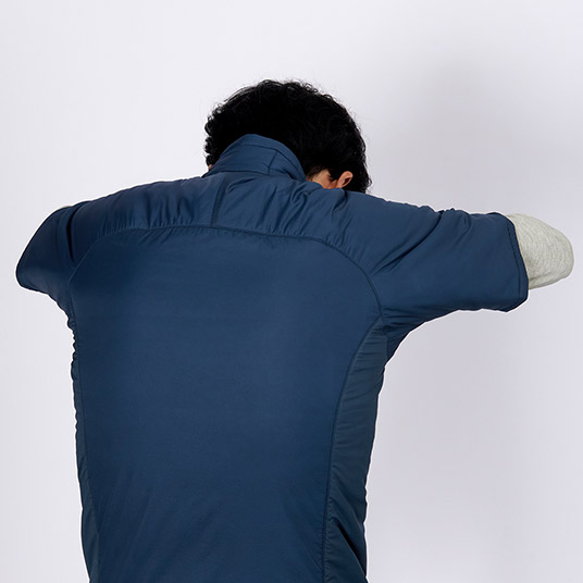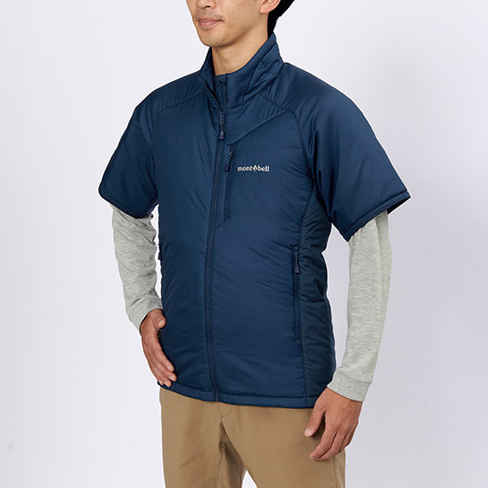 保温性・耐久性・ストレッチ性を備える中綿素材「ストレッチ エクセロフト®」に透湿性とストレッチ性に優れたシェル素材を組み合わせることで、驚異の運動性と快適性を実現したモデルです。重ね着した際にも腕が動かしやすく、肩を効果的に保温できる半袖タイプです。