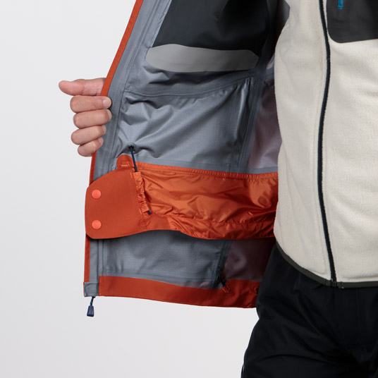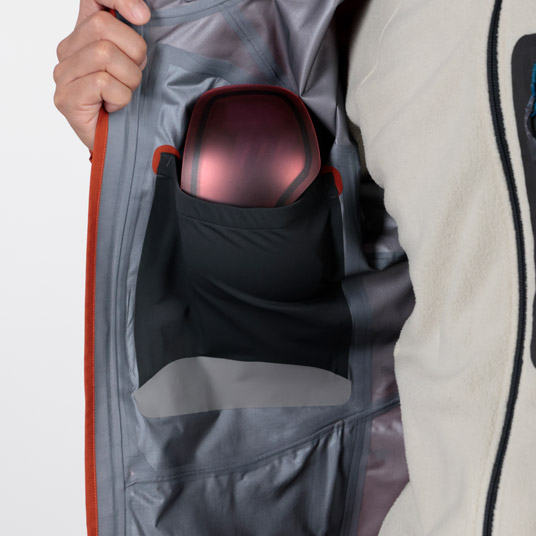| 特長 | トライアクスルフード / フィット感を高める独自の立体フードパターン / 高めの襟元 / ジッパーが顔に当たらない仕様 / 立体裁断(肘) / アルパインカフ / アクアテクトジッパー / エアレーションシステム / スムースピットジップ / 滑り止め付きウインドスカート / 裾の調節は前身頃内側 / リフト券やICチップを入れられる左袖のポケット / スタッフバック付き |