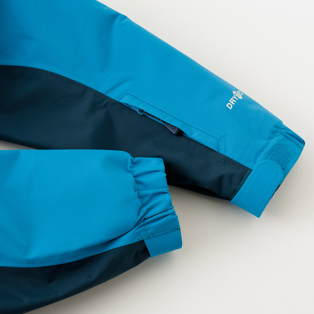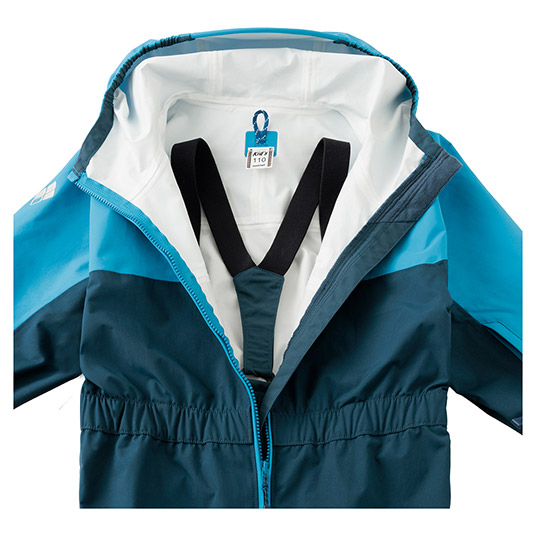 防水透湿性に優れ、気温やシーンに合わせたレイヤリングができ、オールシーズン活躍する、一枚地のカバーオールです。サイズ調節システム(グローフィットシステム)により約20cmの身長差に対応でき、子どもの成長に合わせて長く着用いただけます。股下には用足しなどに便利なフルオープンジッパーを装備。フードはスキー用ヘルメット対応で、裾幅はパウダーブーツKid'sなどのウインターブーツやスキーブーツに対応します。左袖にはリフト券やICカードをを収納できるポケットを設けています。汚れたらご自宅で洗濯できます。水の浸入がしやすい箇所には目止め処理(シームテープ)を施しています。