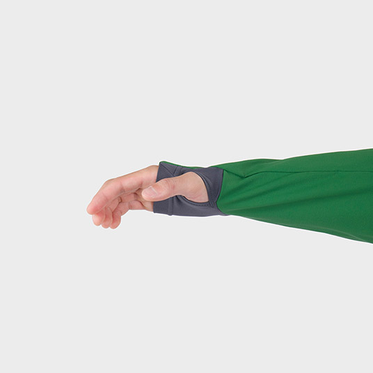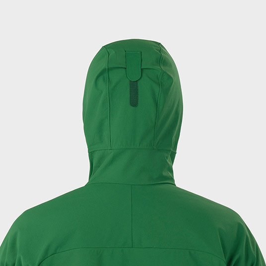 | 特長 | デュアルアクスルフード / 立体裁断(肘) / ストレッチカフ / ジッパーがあごに当たらない仕様 / サムホール |