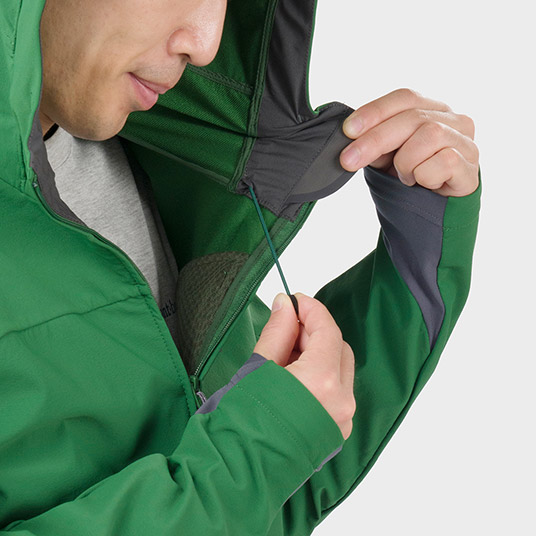高い防風性とはっ水性を備え、ストレッチ性に優れたパーカです。伸縮性素材が体の動きにしなやかに追従します。薄手ながら適度な保温性があり、衣服内に熱気がこもりにくく、運動量が多いアクティビティでも快適な着心地です。