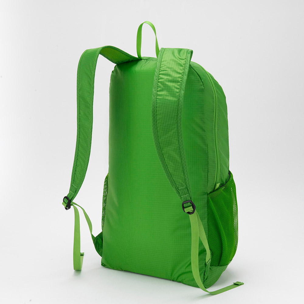 パック全体を内ポケットに収納できる軽量コンパクトなデイパックです。フロントポケットとサイドポケットを備え、小物の収納に便利です。薄手の生地で日常使いやサブザックとしての使用に適しています。