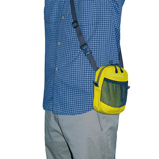 場面や用途に合わせて4通りの使い方ができる縦長形状のポーチです。フロント部には中身が確認しやすいメッシュポケット付き。内側にもポケットを設けているため、小物類を機能的に収納することが可能です。ストラップを使用しないときは本体に収納することができます。