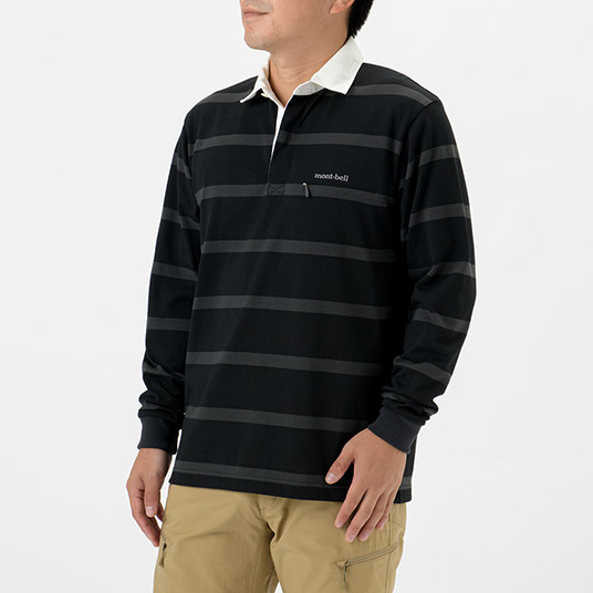 柔らかな肌触りで消臭効果も備える長袖のラガーシャツです。吸水拡散性やUVカット効果にも優れ、快適な着心地です。