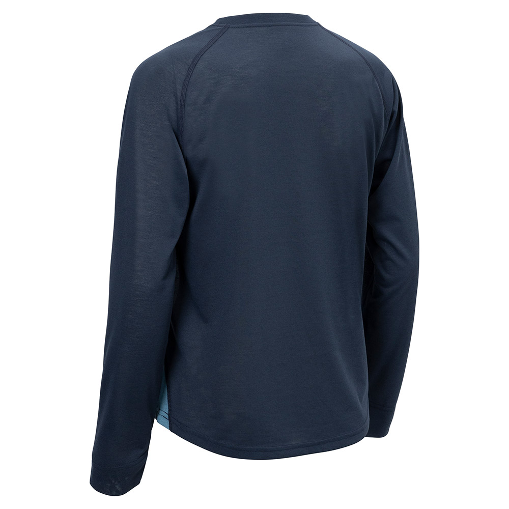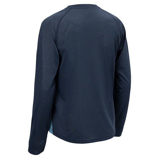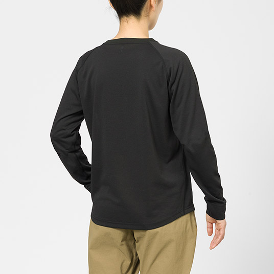コットンのような自然な風合いと優しい肌触りで、優れた速乾性と通気性を兼ね備えた快適素材ウイックロン®を使用。肩幅に関係なく着られる長袖ラグランスリーブTシャツです。肩部分に縫い目がないのでバックパックなどのショルダーハーネスとの肌あたりも解消します。