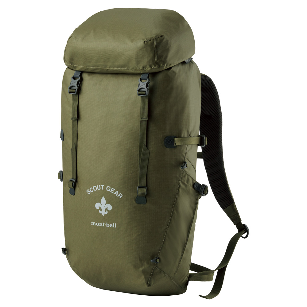 ボーイスカウトとモンベルが共同で企画した軽量なバックパックです。耐水・耐摩耗性に優れた独自の素材を使用。開口部は2回以上折り返してバックルで留める耐水性の高い仕様です。縫製部分にシームテープ加工を施すことで耐水性を高めています。フィールドワークやハイキングに加え、キャンプや旅行にも適しています。