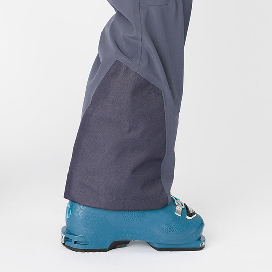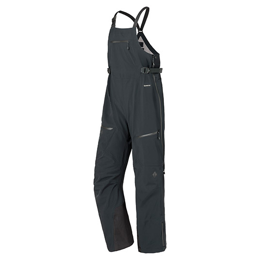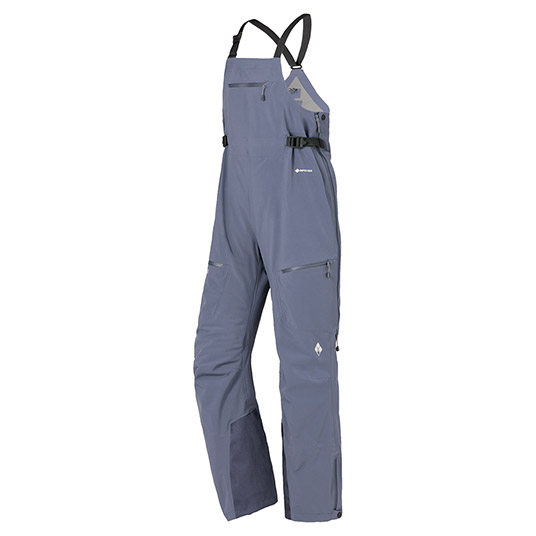 スキーやスノーボードなどのスノースポーツに適した透湿性とストレッチ性に優れた素材を使用した、胸の高さまで覆うデザインのビブです。スキーブーツなどの大型ブーツに対応した裾幅です。一カ所のバックルでサスペンダーの長さを容易に調節可能。