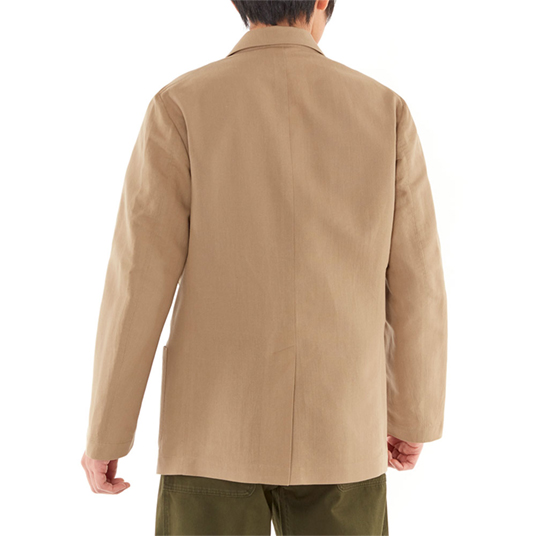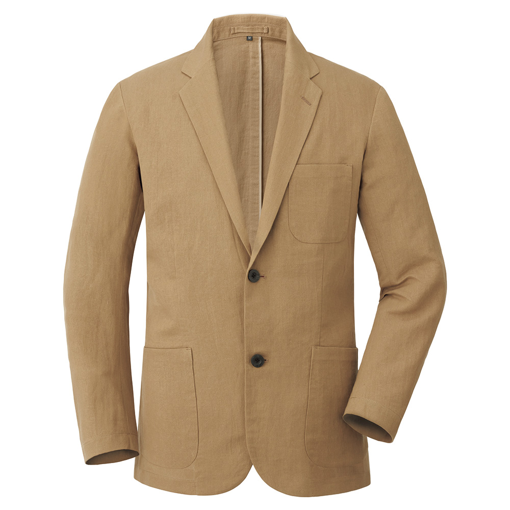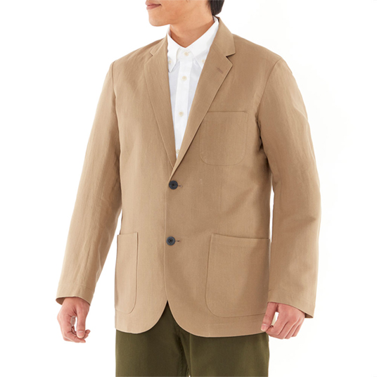 清涼素材・紙糸プラス®で仕立てた、スタンダードな2つボタンのジャケットです。裏地と肩パッドを付けていないので、涼しく軽やかな着心地です。