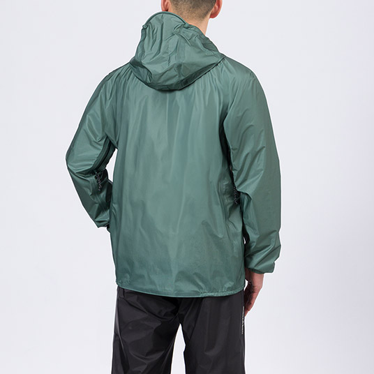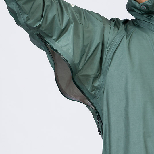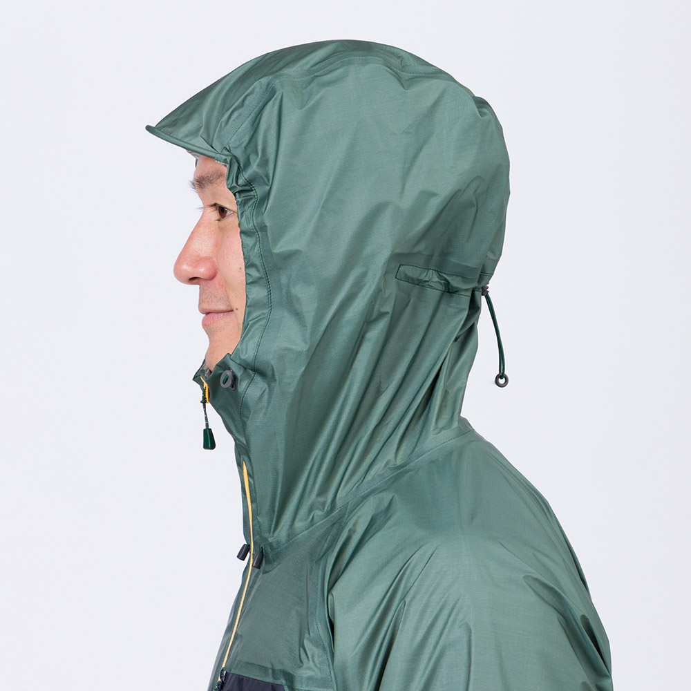 | 特長 | トライアクスルフード / ロールアップフード / アクアテクトジッパー / 運動性を高める独自のパターン / 浸水を防ぐ接着加工 / アルパインカフ / スムースピットジップ / 裾の調節機能 / K-Mono CUT / 車のライトなどを反射して光るテープ(フロントジッパー) / スマートソーイング / スタッフバッグ付き |