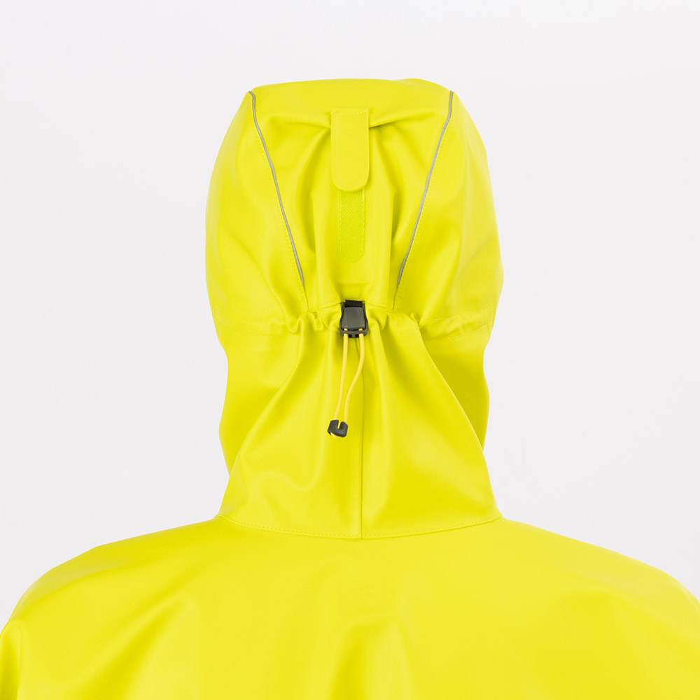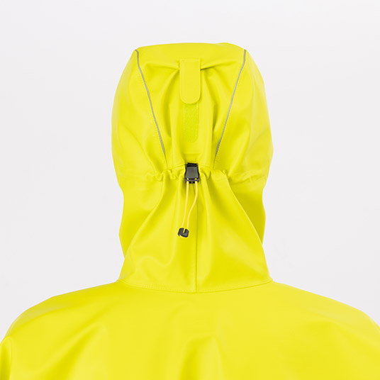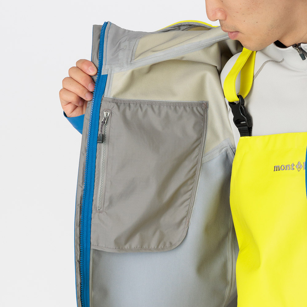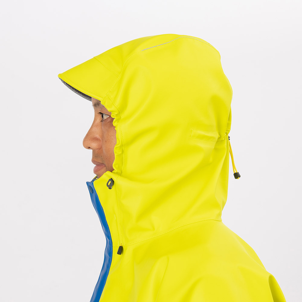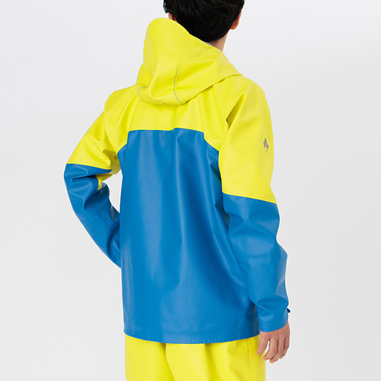 | 特長 | トライアクスルフード / ロールアップフード / 運動性を高める独自のパターン / 浸水を防ぐ接着加工 / はっ水ジッパー / フードには反射テープを配置 / ジッパーの上にかぶさる2枚のフラップで水の浸入を防止 / インナーカフ |