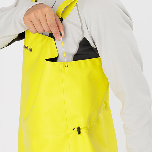 防水性に特化した一般的な漁業用ビブに比べ、蒸れを放出する優れた透湿性と防水性を兼ね備えた汚れに強いビブです。生地の表面に汚れにくい防護膜を備えた4層構造の防水透湿性素材ドライテック®生地を使用。ハードな使用にも対応可能な耐摩耗性を実現しています。ヒップより上はゆったりとしたシルエットで、厚手のインナーを重ね着することができます。